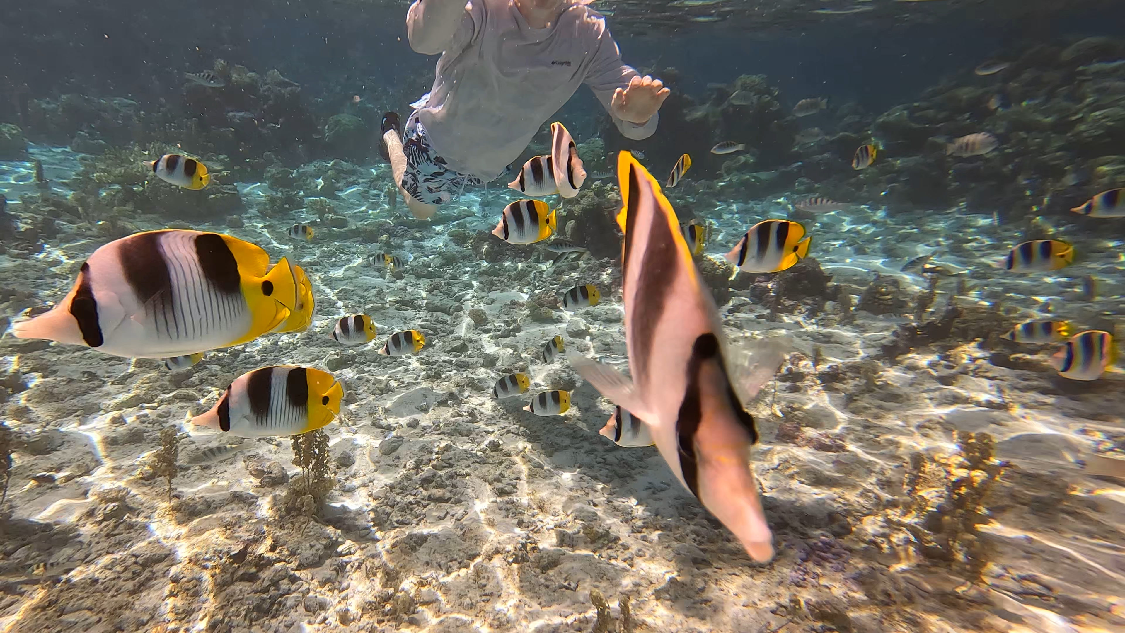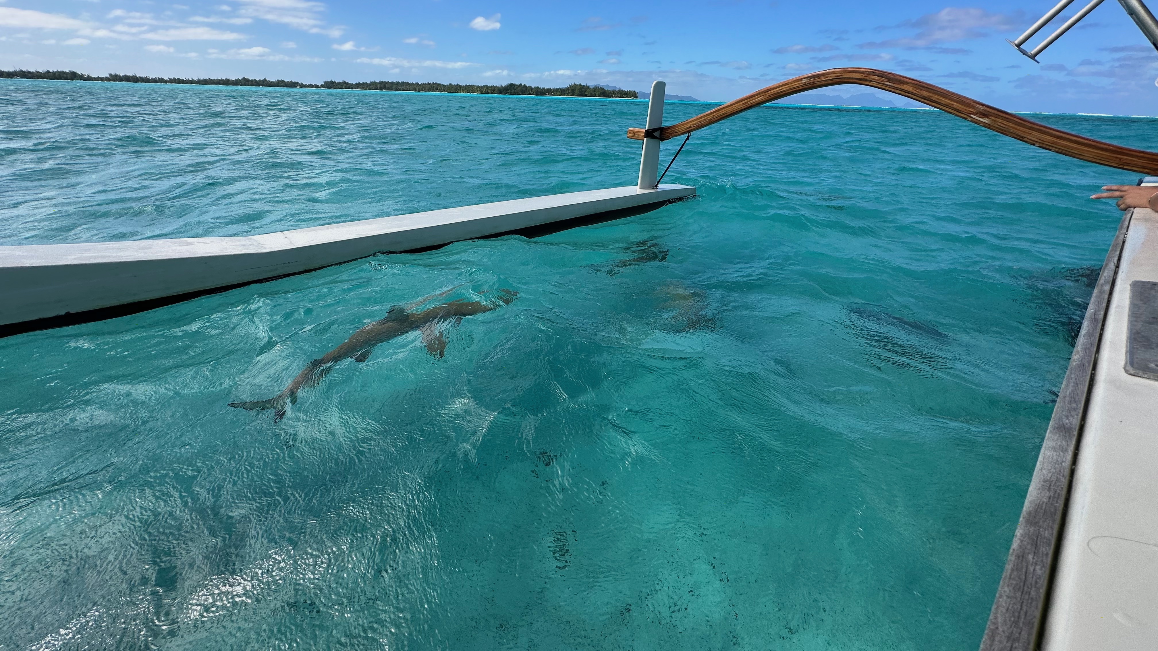 The winds have been pretty steady since we arrived and today was no exception. We weren’t able to go to the “usual” coral gardens across the way from Le Moana so instead we went to a “secondary” coral garden up north where the waters were a little bit calmer and visibility a little better. The water and the sea life were stunning and abundant. We went to a couple of different spots to meet up with black-tipped reef sharks and stingrays.
