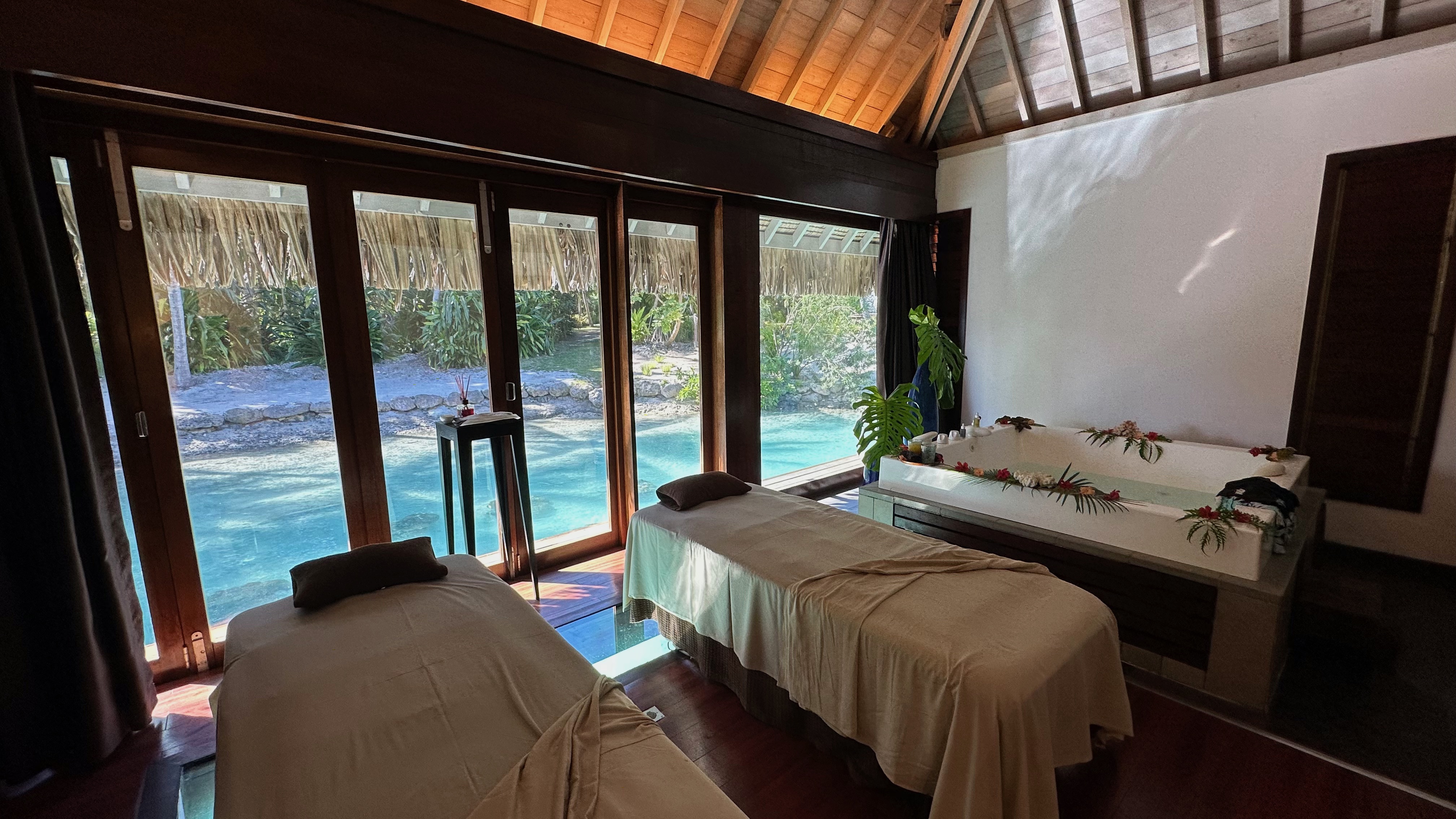I had booked the “Marine Romance” package with concierge about 3 weeks prior to our arrival . This was an 80 minute couples massage with about 20 minutes in a soaking tub, and full use of the spa facilities for the day. The cost was $684.41 USD which I thought was reasonable for Bora Bora. We have paid close to $500 USD for a couples massage on Disney cruises before so it didn’t seem too bad.